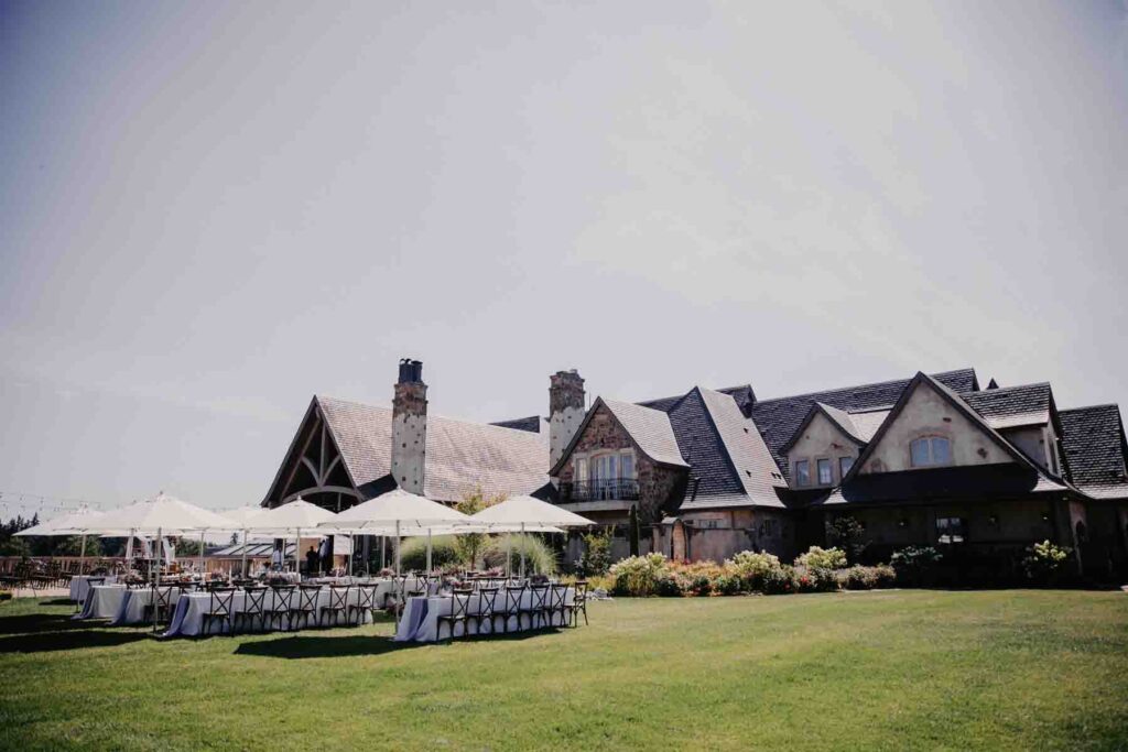 Set against a backdrop of old-world European elegance, it offers a rare blend of refined luxury and editorial style. Every surface, line, and layer of light feels intentional: stone textures that photograph beautifully on film, soft neutral palettes that let fashion shine, and architecture that frames rather than competes with the couple. Ideal for weddings of 200 or more this Oregon City wedding venue is soon to launch an arboretum to extend their wedding offerings into the colder months.